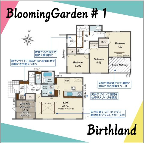 LDK 20.0帖 1室/和室 4.5帖 1室/洋室 7.0帖 1室/洋室 6.0帖 1室/洋室 5.2帖 1室 - 向き